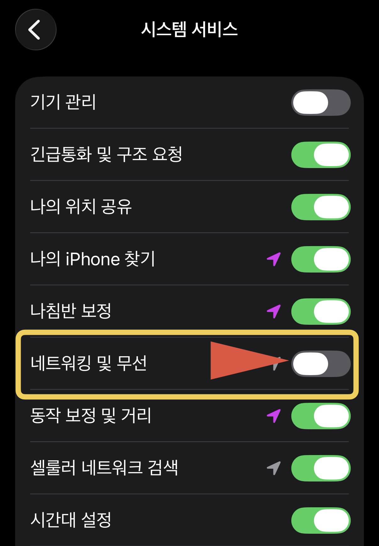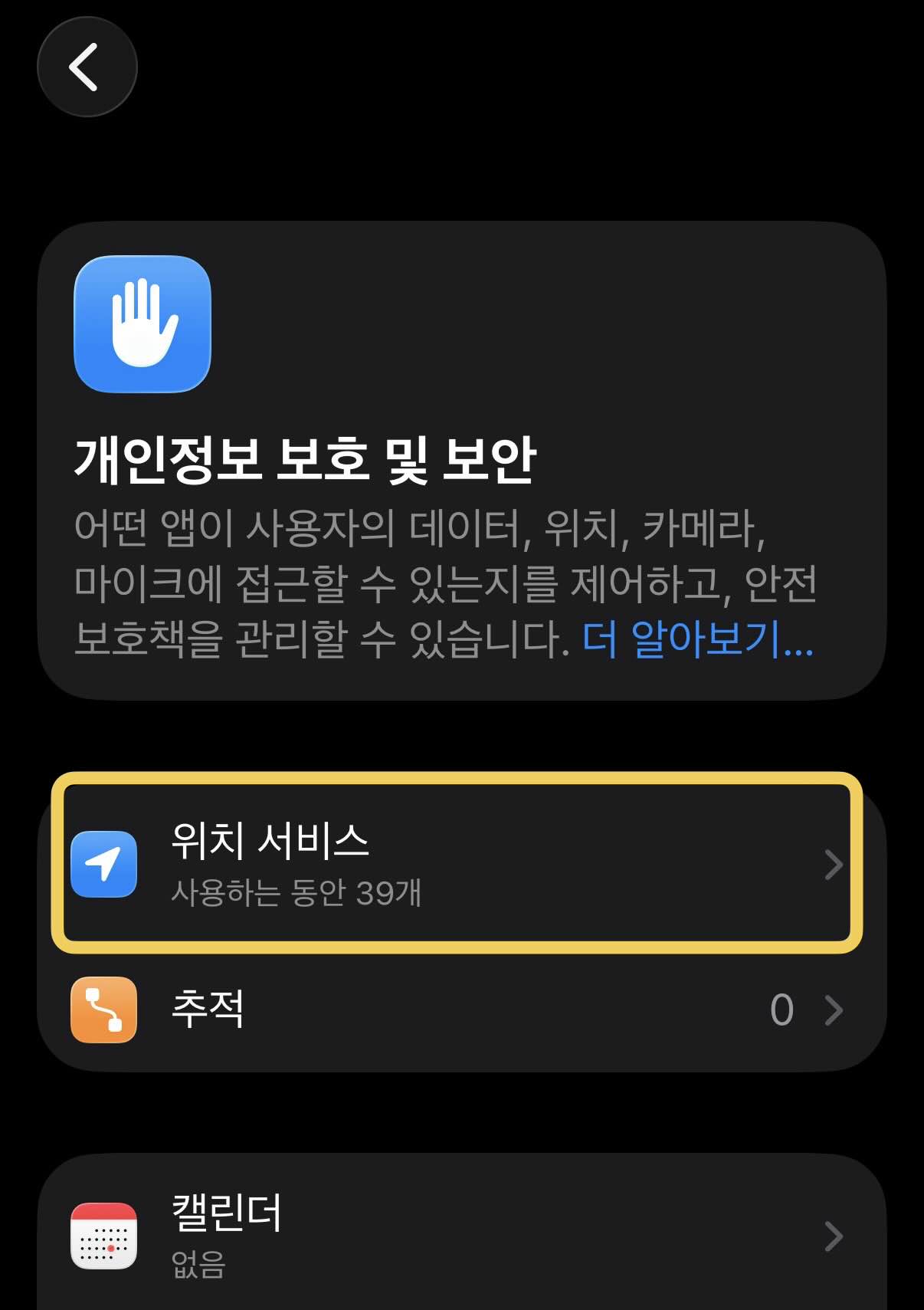 위치 서비스 -> 시스템 서비스로 들어간다.