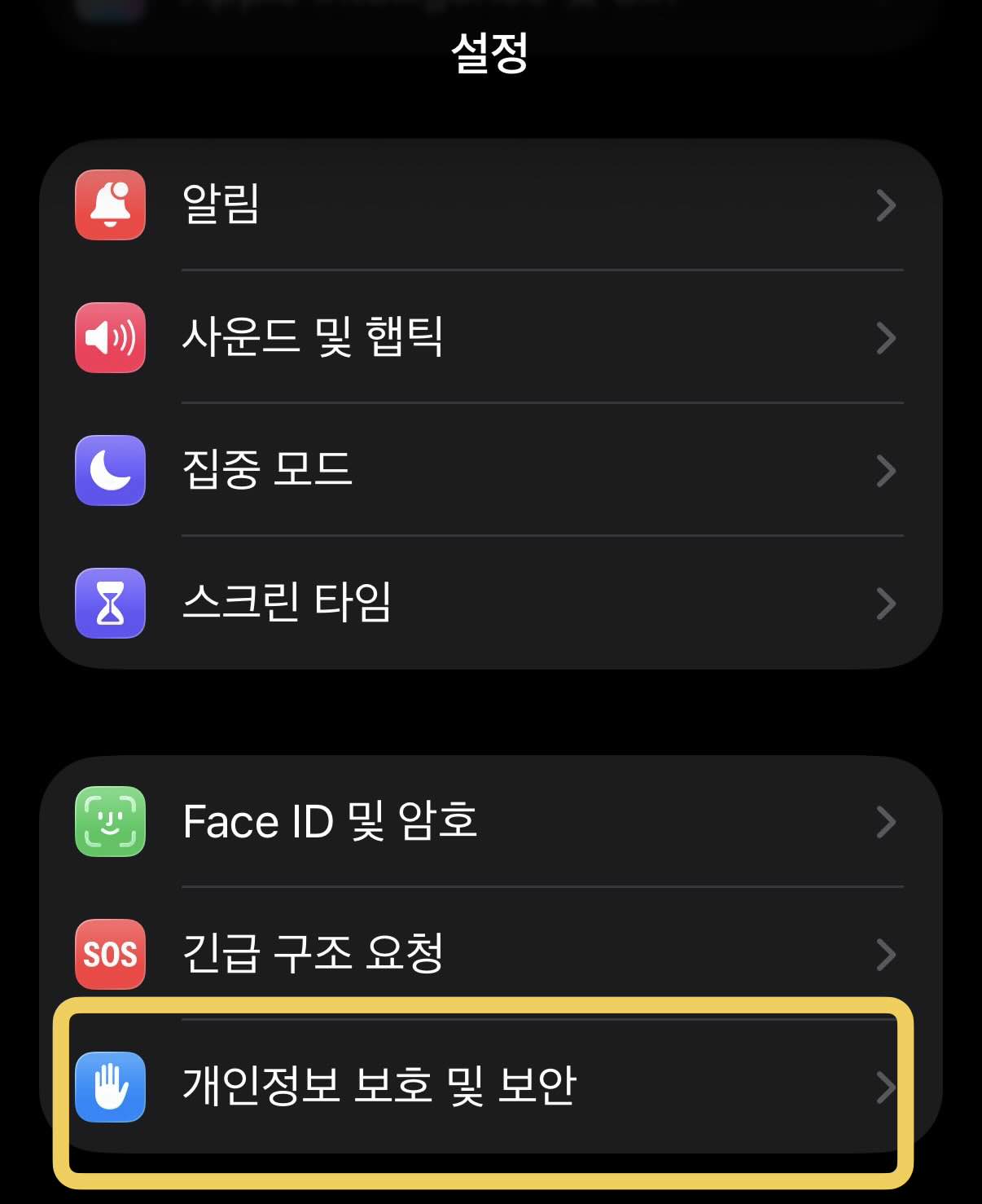 먼저 설정에서 개인정보 보호 및 보안 에 들어간다.