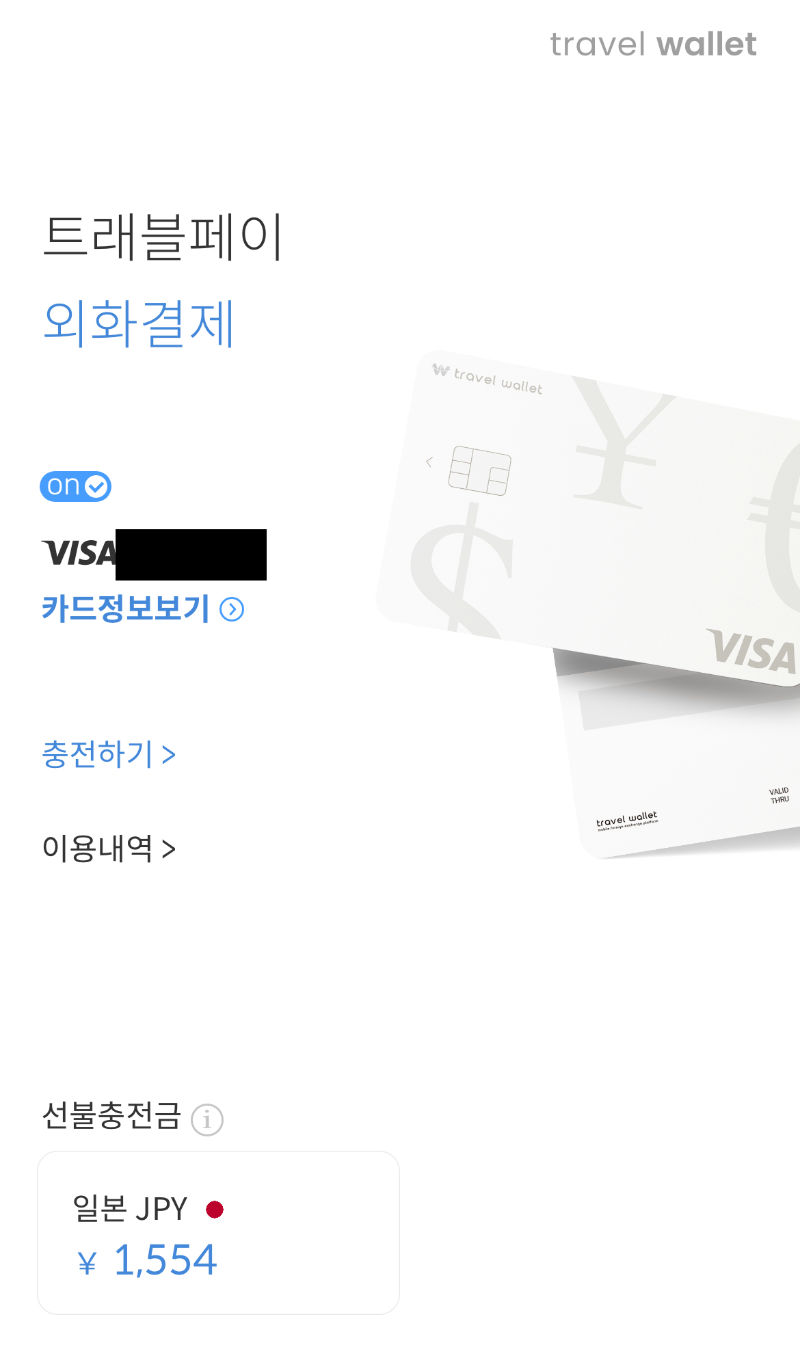 이번 오사카 여행에 주로 이용한 트래블페이(트래블월렛) 카드를 소개합니다. 트래블페이는 어플을 이용하여 카드에 외화를 미리 충전하고, 충전된 외화로 수수료 없이 결제하는 외화 충전 & 결제 서비스 입니다. 간단히 말하면 외화 체크카드 같은 개념입니다.