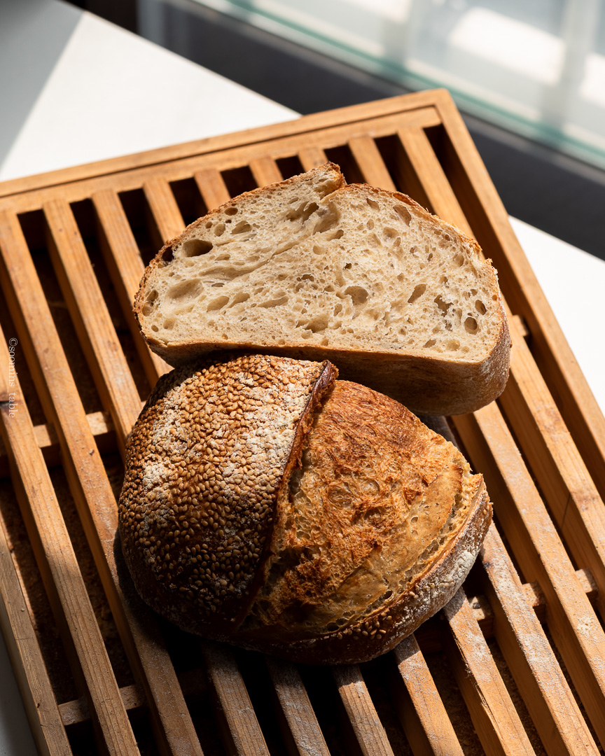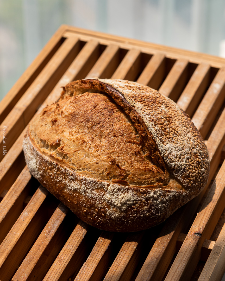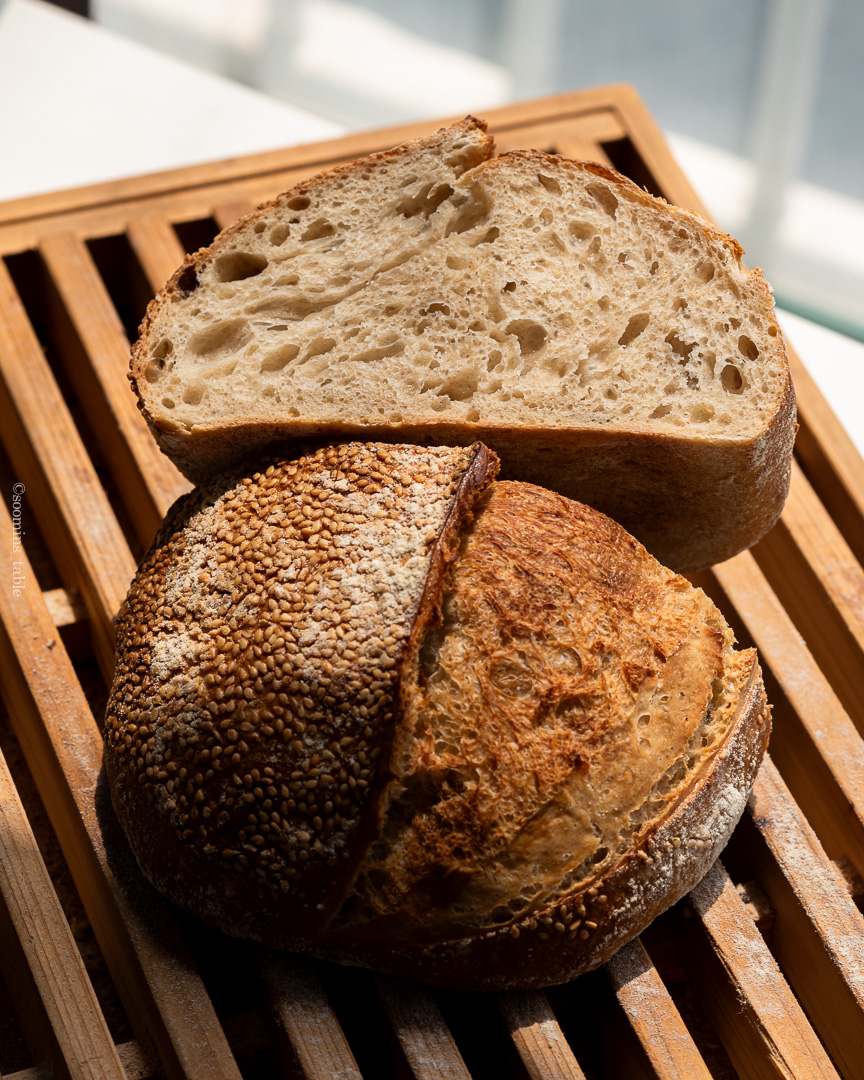 프랑스 스펠트, T65로 만든 참깨 사워도우다.