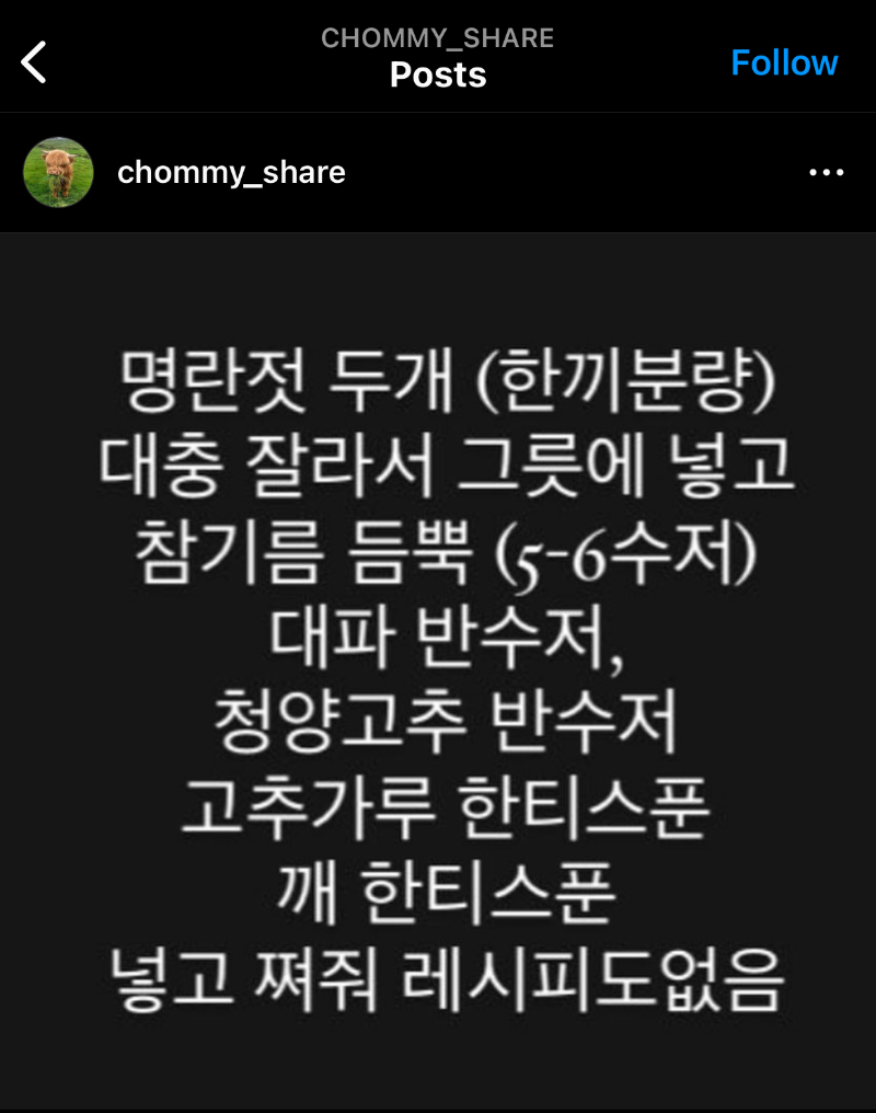 인스타그램에서 핫했던 춈미 명란찜 입니다.